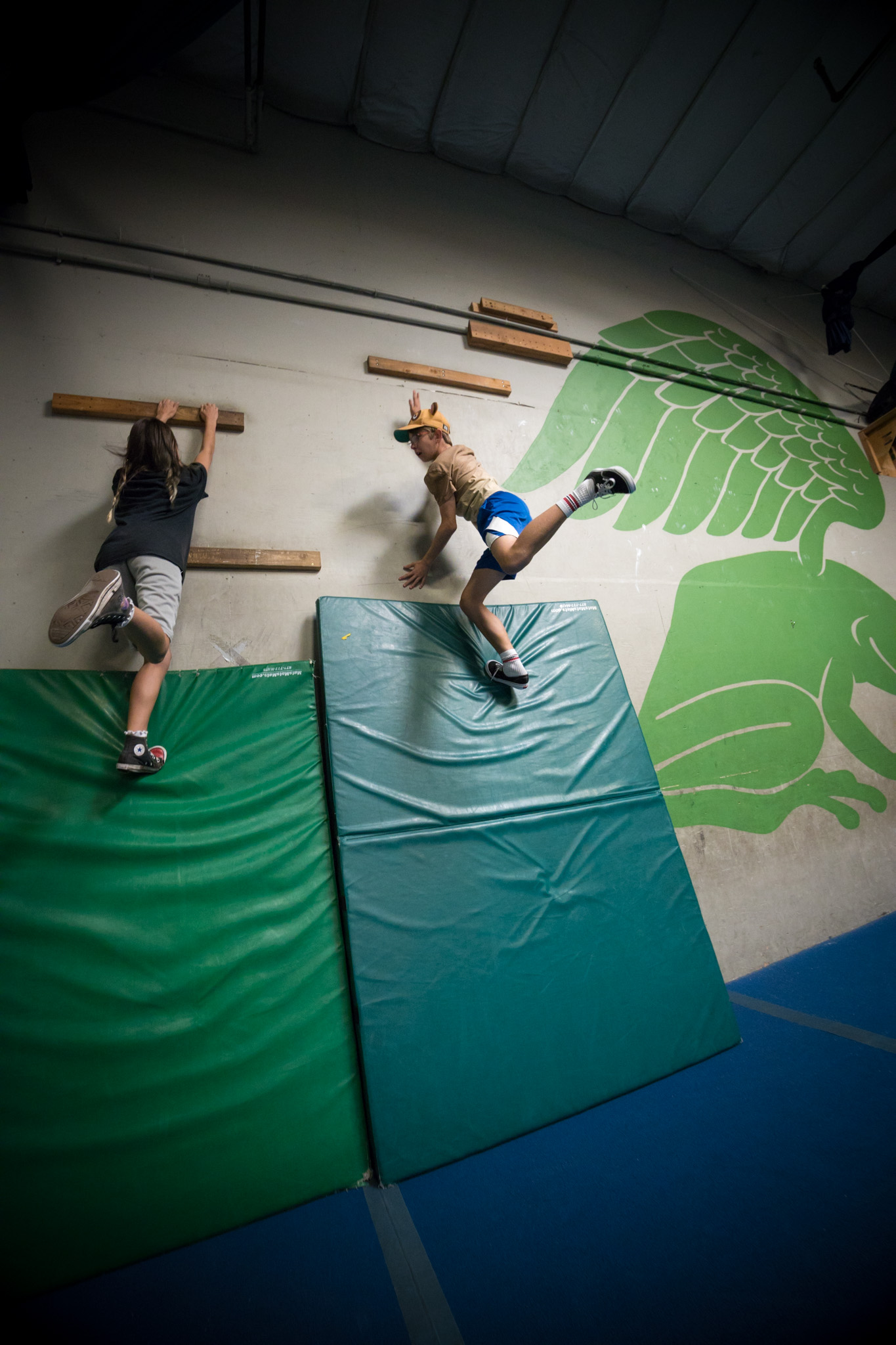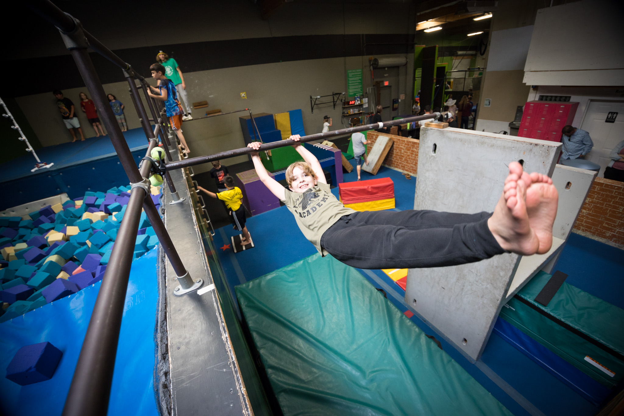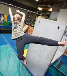 Each week we introduce the group to fundamental parkour skills like vaulting, climbing, wallruns, & more! The students who really want to learn can spend their open gym time learning flips at the foam pit!